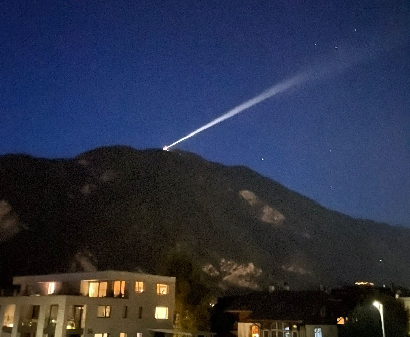 Der helle Lichtstrahl ist vom Bödeli gut sichtbar.